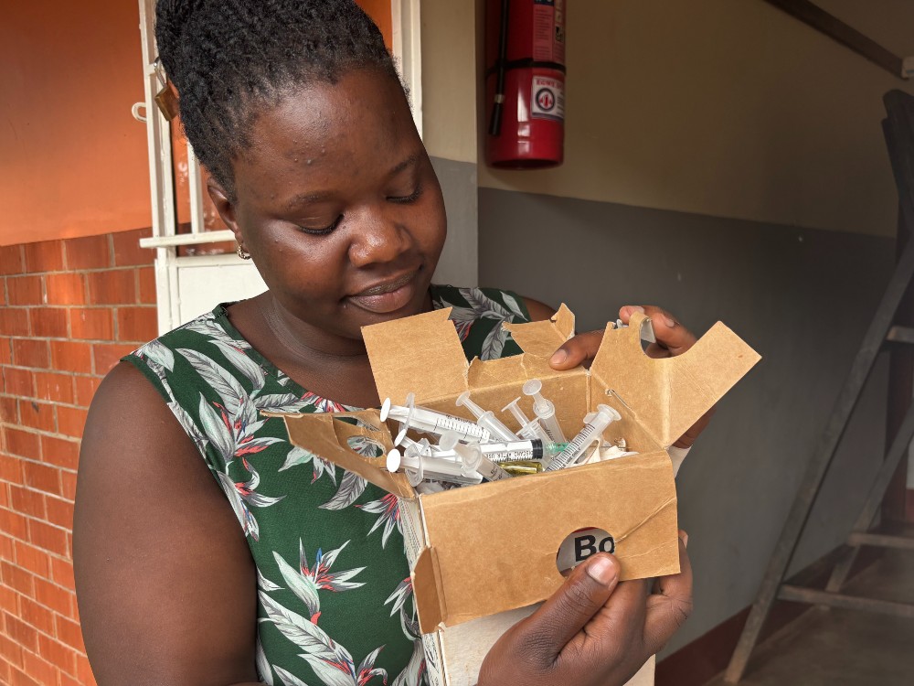 Dado que algunos niños son VIH positivos, es fundamental que las jeringas y agujas ya se puedan desechar de forma segura en el incinerador.